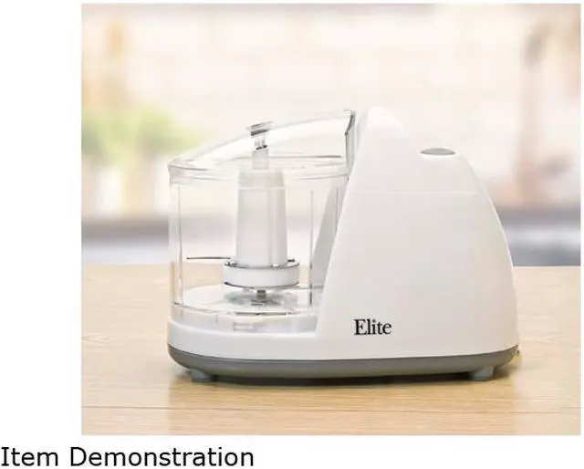 | Features | Chop and dice any of your favorite foods with the Elite Cuisine Mini Food Chopper. This chopper is a compact, powerful tool with a 1.5 cups capacity. Featuring stainless steel blades, pulse operated controls, and a safety lock. Perfect for making small meals or snacks quickly and easily Safety-lock cover prevents chopper from operating unless cover is secure Small, yet powerful, to quickly chop or dice a variety of vegetables and foods |