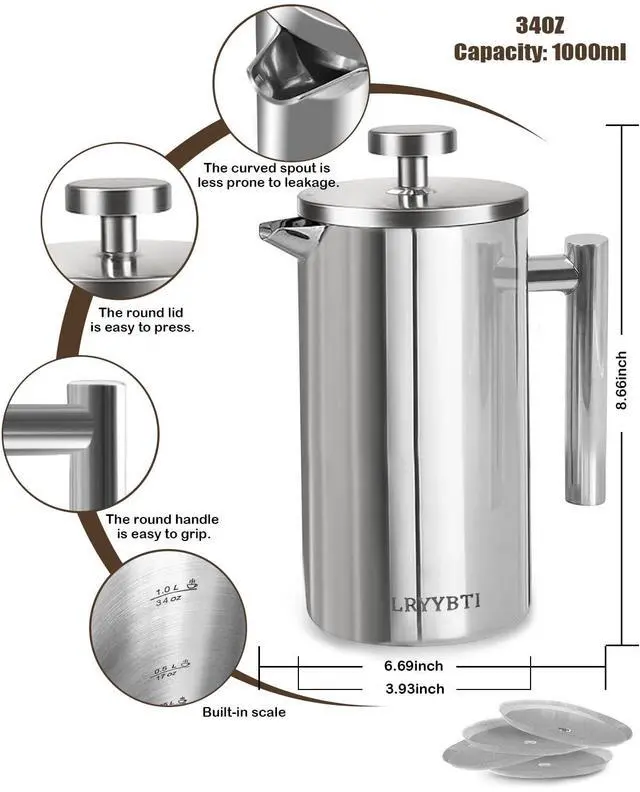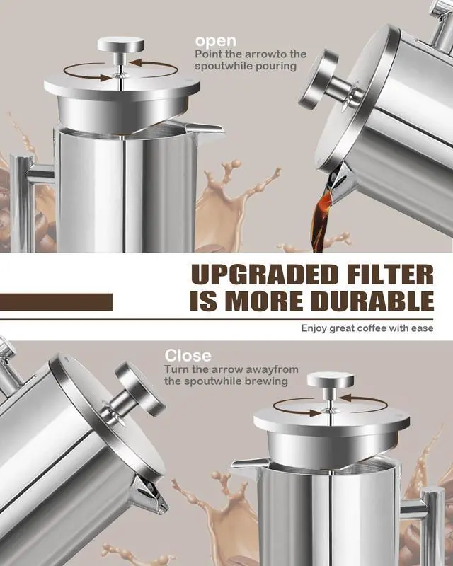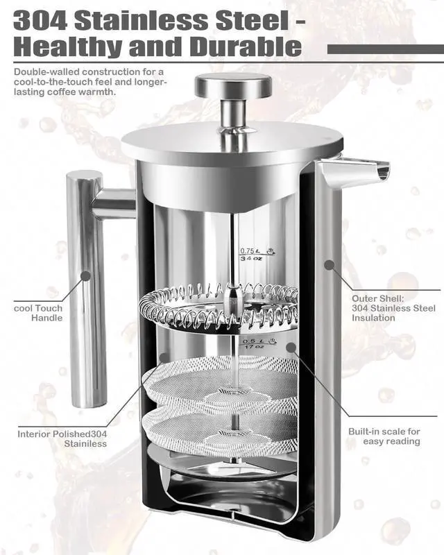 DURABLE CONSTRUCTION: French press Made 304 stainless steel frame for long-lasting performance and reliable brewing
