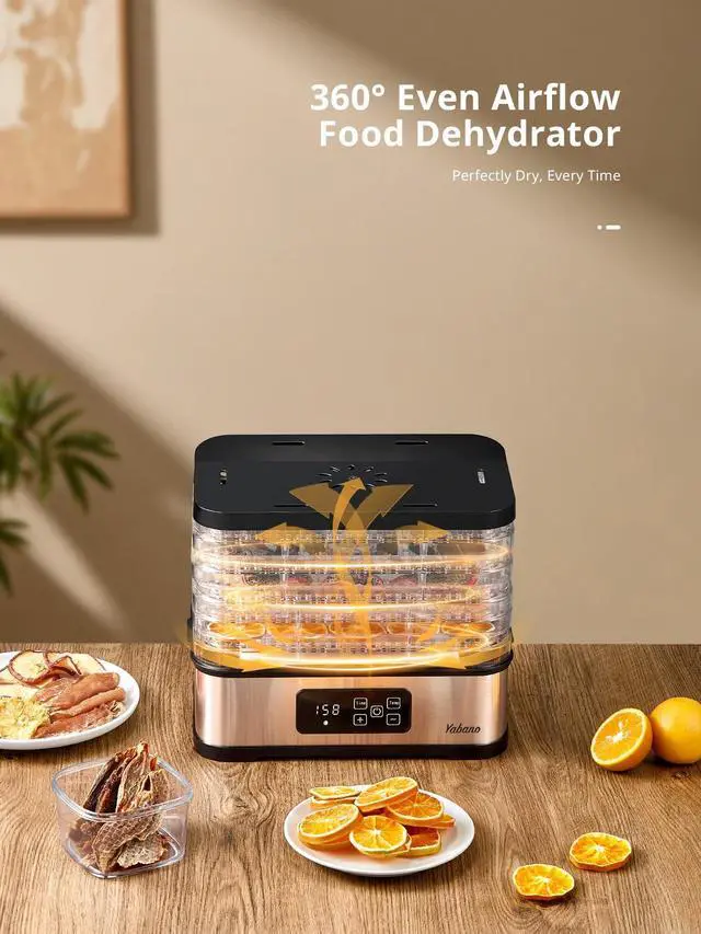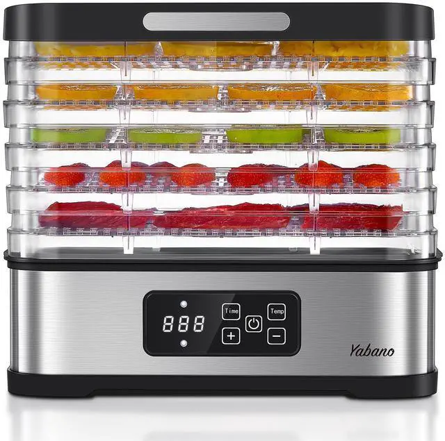 Yabano Food Dehydrator Machine for Home Use, 250W Electric Dryer with Adjustable Timer & Temperature Control, 5 Trays - Digital Presets for Fruit, Meat, Herbs, Jerky