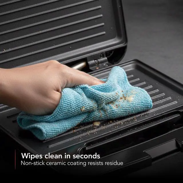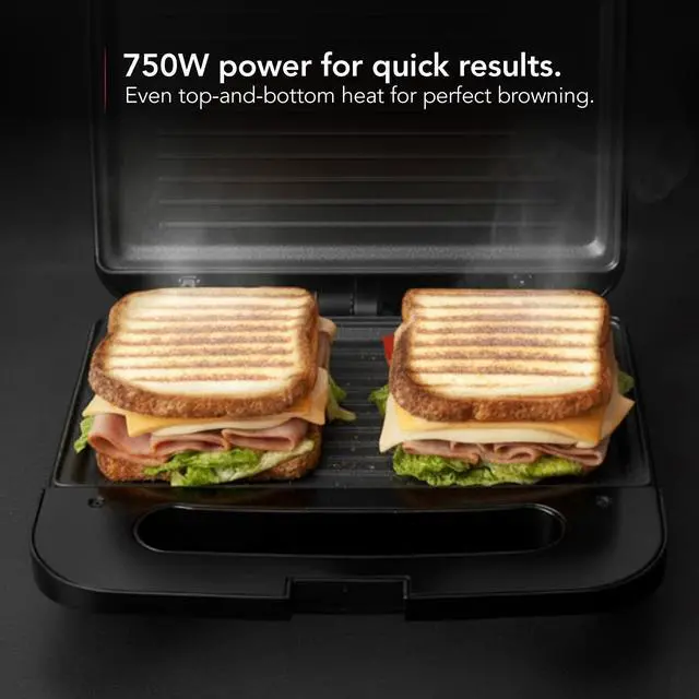 Equipped with a 750W power and dual cooking plates that provides even heat.