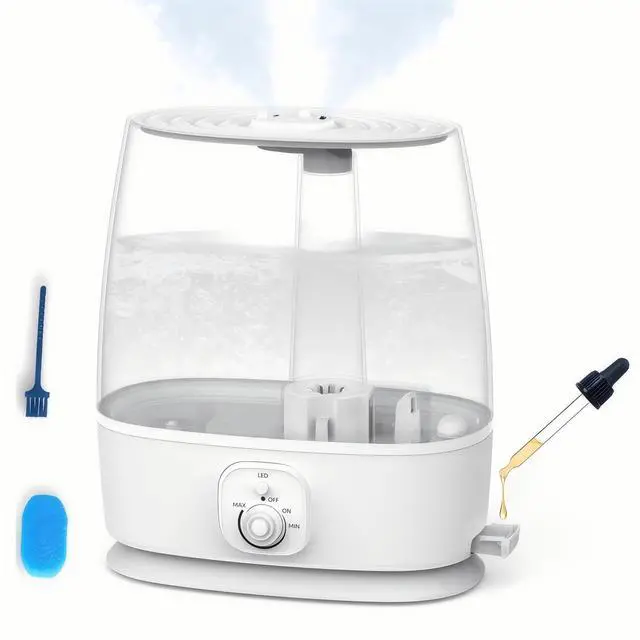 • 60-Hour Marathon Runtime & Effortless Top-Fill: Stop refilling daily! This 6L large-capacity humidifier runs for up to 60 hours on a single fill. The wide-mouth top-fill canopy design makes adding water quick and spill-free. It delivers a powerful 280ml/h of cool mist to effectively combat dryness, alleviate allergies and nasal congestion, making it perfect for large rooms, bedrooms, nurseries, and home offices. Energy-efficient ultrasonic technology quietly maintains perfect humidity levels