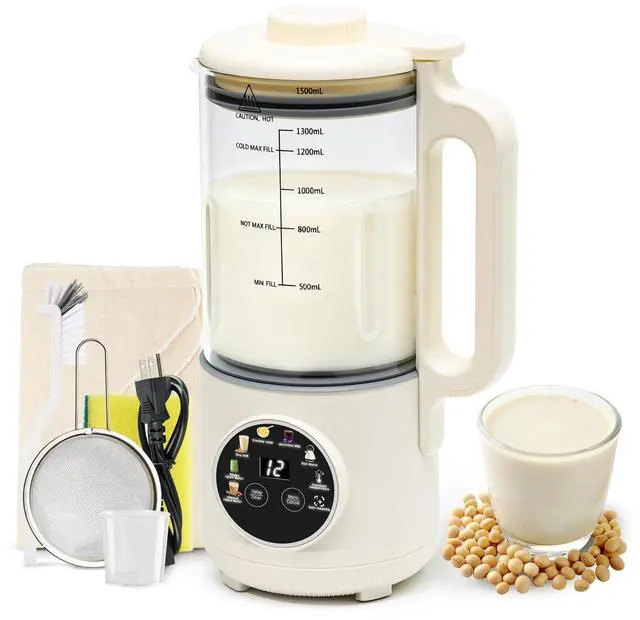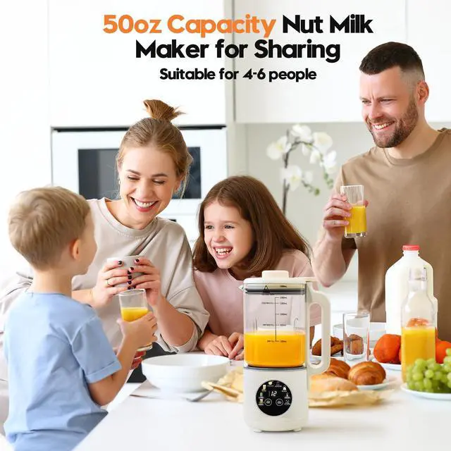 8-in-1 Multifunctional Nut Milk MakerEasily create Almond Milk (hard nuts), Soy Milk, Oat Milk, Shakes (soft nuts), Creamy Soup, Juice, Boiled Water, and more with one touch. Designed for versatile plant-based cooking and daily healthy drinks.