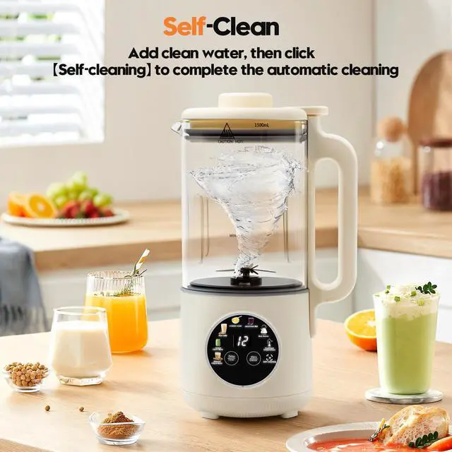 Easy to Clean & Safe to UseOne-touch self-cleaning heats water to 140°F and stirs for 2 minutes, reducing manual washing. Built-in overheat protection and auto shut-off ensure safe operation. Comes with a recipe book for endless inspiration.