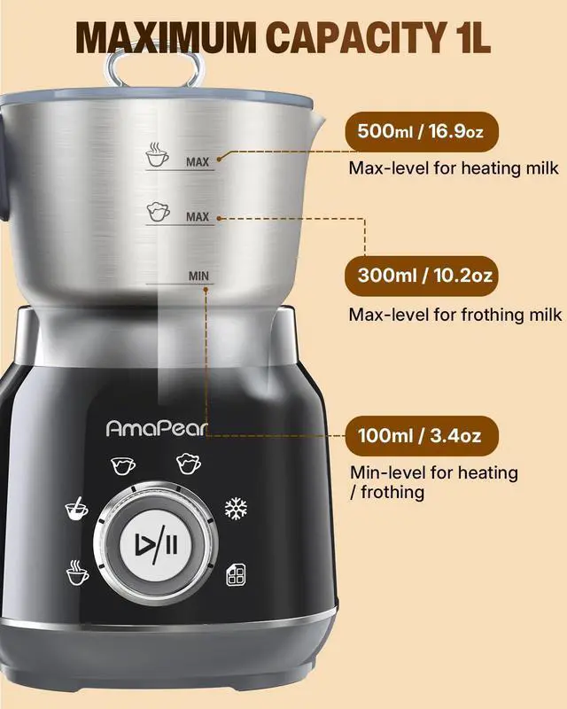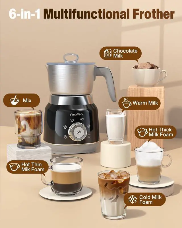 Milk Frother and Steamer, 6 in 1 Electric Foam Maker for Coffee, 16.9oz/500ml Milk Warmer for Latte, Macchiato, Cappuccino, Hot Chocolate Maker