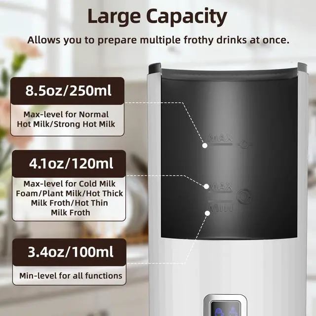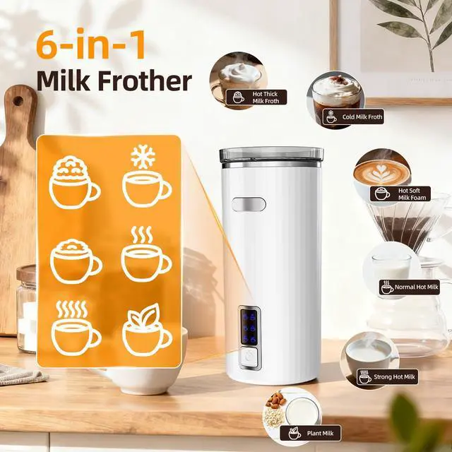 6-in-1 Electric Milk Steamer, 8.5oz/250ml Automatic Warm and Cold Foam Maker and Milk Warmer