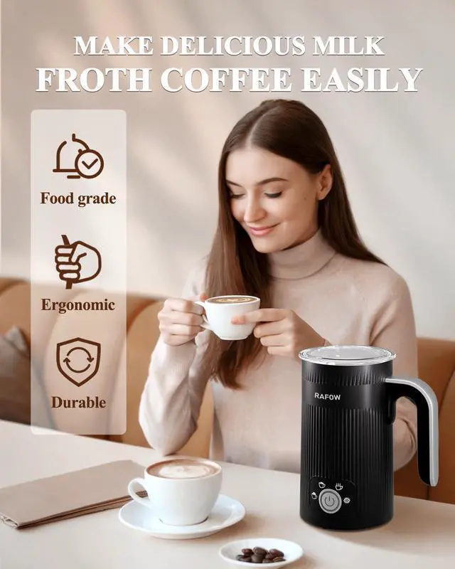 The 4 in 1 Electric Milk Frother is a game-changer for coffee enthusiasts seeking the perfect froth for their favorite beverages.