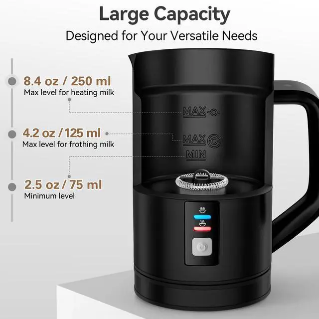 The indicator light can help you easily identify the difference between heating and foaming and foaming without heating