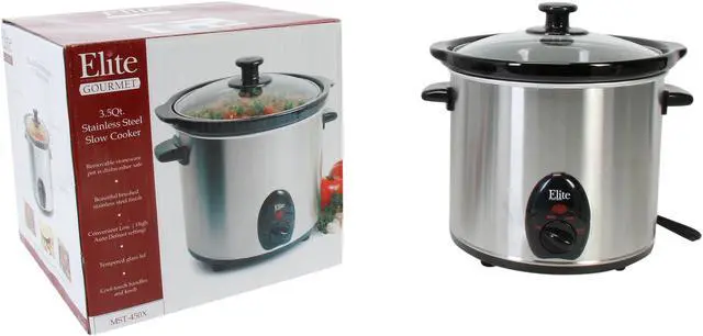 | Features | 3.5 Quart removable inner stoneware pot Convenient LOW | HIGH | DEFROST settings Stainless steel construction Tempered clear glass lid Cool-touch handles and knobs |