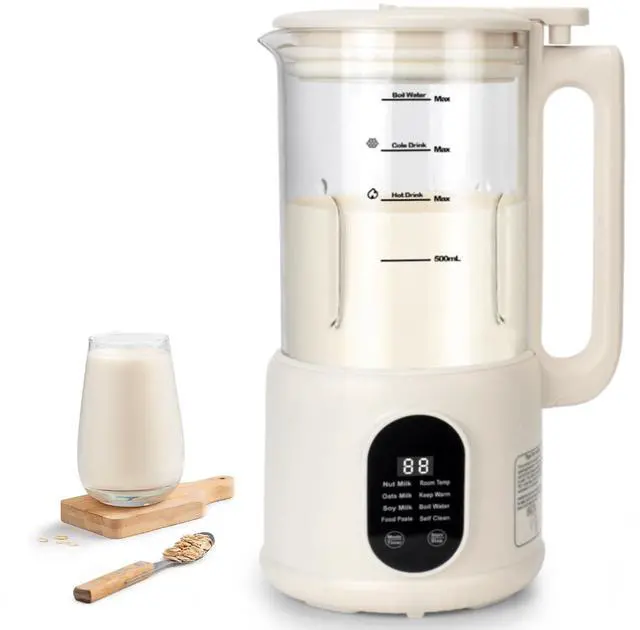 Automatic Self-Cleaning & Low NoiseThe nut milk maker features functions for 120s Auto clean, just press the button, the machine automatically cleans its interior; Moreover,the machine makes low noise when using it