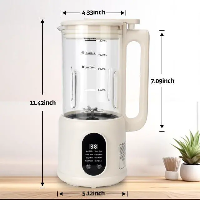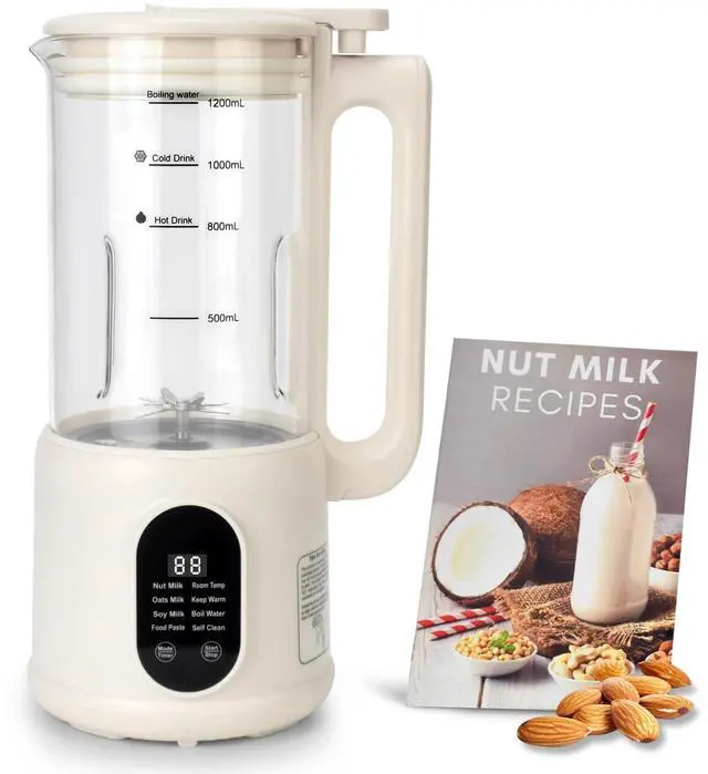 Automatic Self-Cleaning & Low NoiseThe nut milk maker features functions for 120s Auto clean, just press the button, the machine automatically cleans its interior; Moreover,the machine makes low noise when using it