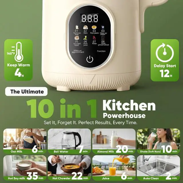 This machine is specifically designed for plant-based milk such as almond milk, soy milk, oat milk, cashew milk and more.