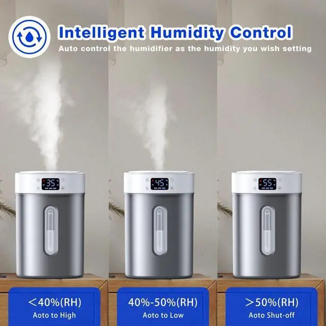 [Smart Auto-Humidity Control & Intuitive LED Display] Take the guesswork out of comfort with our built-in humidistat. Set your target humidity level, and the intelligent sensor will automatically adjust the mist output to maintain the perfect environment; it pauses when your goal is met and restarts if the air gets dry. The sleek touch-screen LED display provides real-time updates, while the clear water scale allows for quick, at-a-glance monitoring.