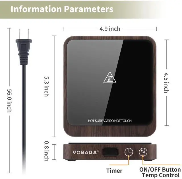 Our coffee warmer have 5 temperature settings, and you can set the desired temperature by touching the temp button to warm your drink. It's a gift to accompany you through the warm winter.