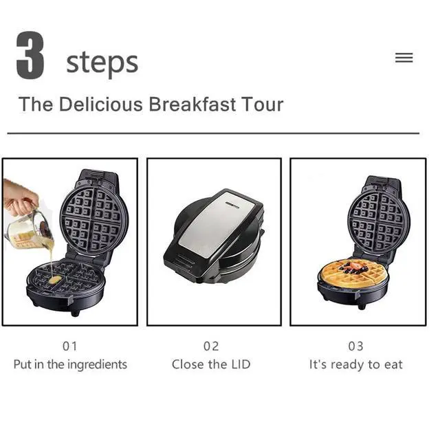[Durable quality]: Each of these 3 plates finished in non stick pot coating. Now you can make your favorite dessert easily in perfect shape. When the goods are baking, both sides of the plates were heated to cook the food. You can also add some ingredient like chocolate powder, strawberry jam, mixed nuts...etc.