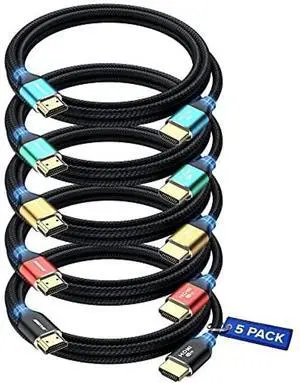 Maximm HDMI 2.1 Cable 8 Feet, Multicolor, 5 Pack, 8K 60Hz 4K 120Hz Ultra High Speed, 48Gbps, eARC, Dolby Vision