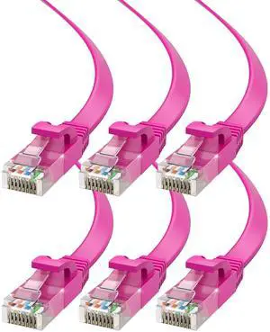 Maximm Cat6 Ethernet Cable 50ft, 6-Pack Pink - Flat High-Speed Network Cables for Gaming, Streaming, Router, Modem, PC, PS5, Xbox - Durable & Space-Saving Design