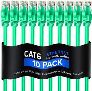 Maximm Cat 6 Ethernet Cable 20 Ft, 100% Pure Copper, (10 Pack) LAN Cable, Patch Cable and Network Cable - UTP (Green) 20 Feet