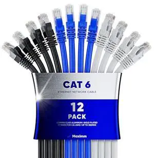 Maximm Cat 6 Ethernet Cable - 6 ft (12-Pack) - High-Speed LAN, Internet, Patch, and Network Cable - UTP, 10Gbps, 550MHz Ethernet Cord - Gray