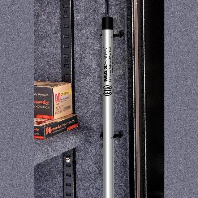 Electric Dehumidifier Rod: Maintenance-free heating rod that provides humidity control in gun safes, cabinets and small enclosures by increasing the temperature in your gun safe to a slightly higher level than the ambient temperature to help to drive out excess humidity