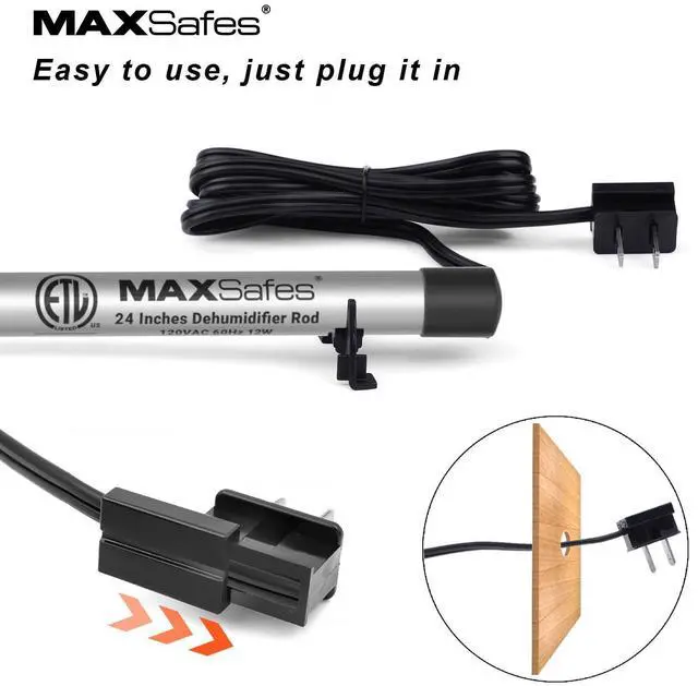 MAXSafes Dehumidifier Rod - ideal moisture absorber for safes that eliminates condensation and dampness and no need to worry about recharging your dehumidifier as its always connected. Do not touch after plugging it in