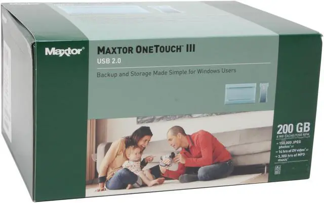 | Features | Maxtor OneTouch button—the easy way to make backup copies of your files Maxtor DriveLock protects contents of drive in case of loss or unauthorized use Simple Maxtor user-interface for drive management, security and backup scheduling System Rollback—rolls back your PC system settings to a better point in time while keeping data current Automatic Synchronization of data between two or more computers Soft-touch over-mold enables stable grip for transport |