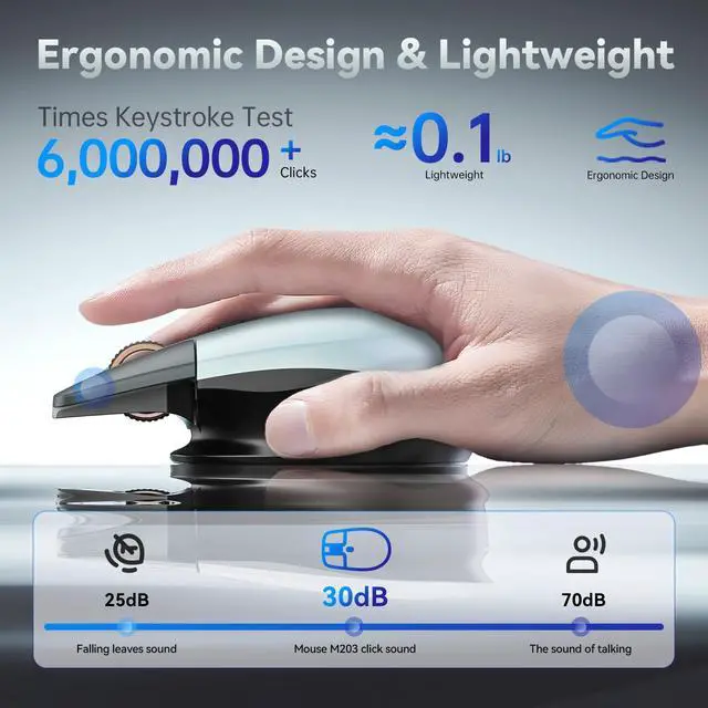 The weight of the mouse and USB receiver is about only 0.1lb. High quality materials make up the product, reducing workload and making work easier. The lightweight body moves more quickly, reducing the impact of operational inertia. The specially reinforced internal structure design makes the mouse more sturdy, and the body is more stable during intense control.