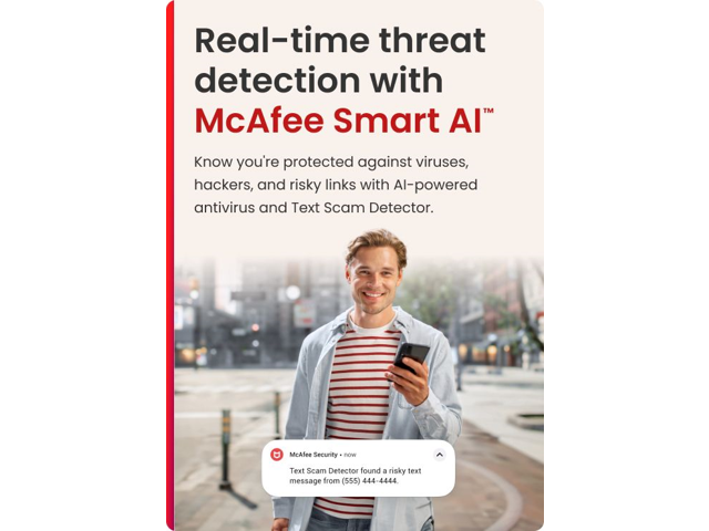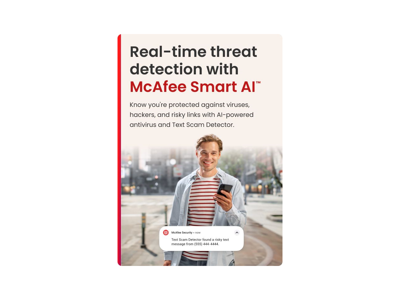 - Text Scam Detector powered with McAfee Smart AI™ alerts you to risky links in texts before you even open them.