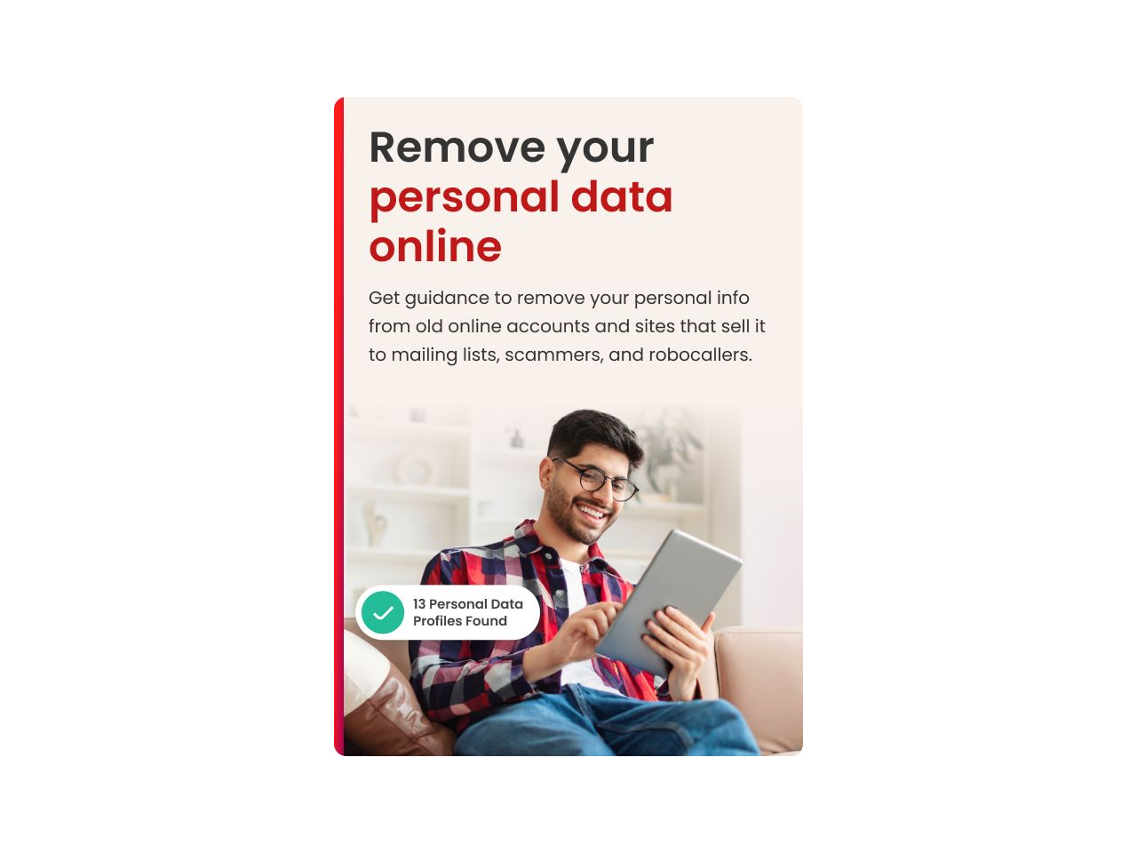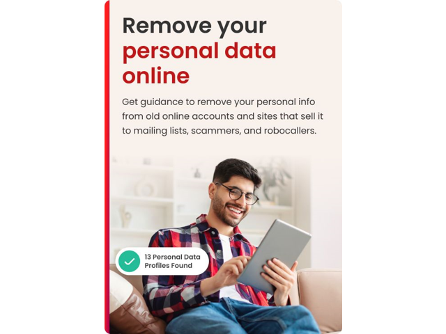 - Personal Data Cleanup (Scans) finds and guides you to remove your personal info from risky sites that sell it to mailing lists, scammers, and robocallers.