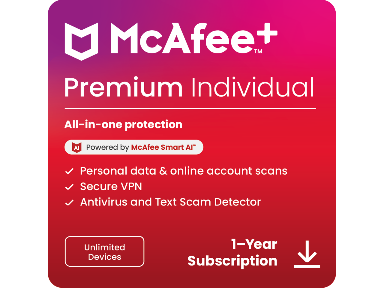 McAfee+ Premium Individual [Student & Teacher Edition] (Unlimited Devices) - 1-Year Subscription with Auto-Renewal (Digital Download)