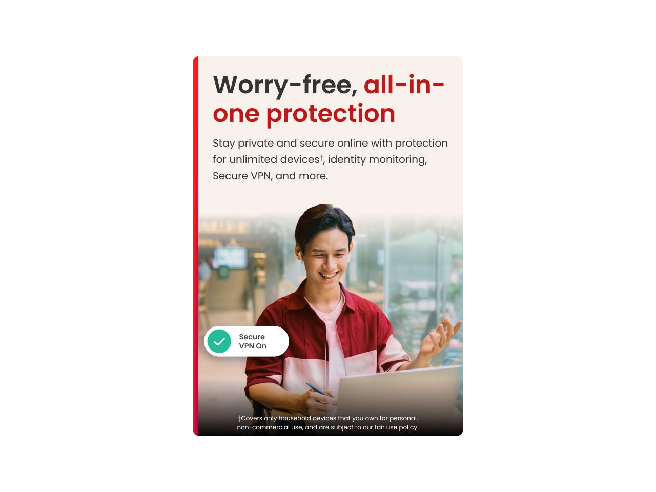 - Stay private and secure online with McAfee+ Premium — worry-free, all-in-one protection for all your household devices.