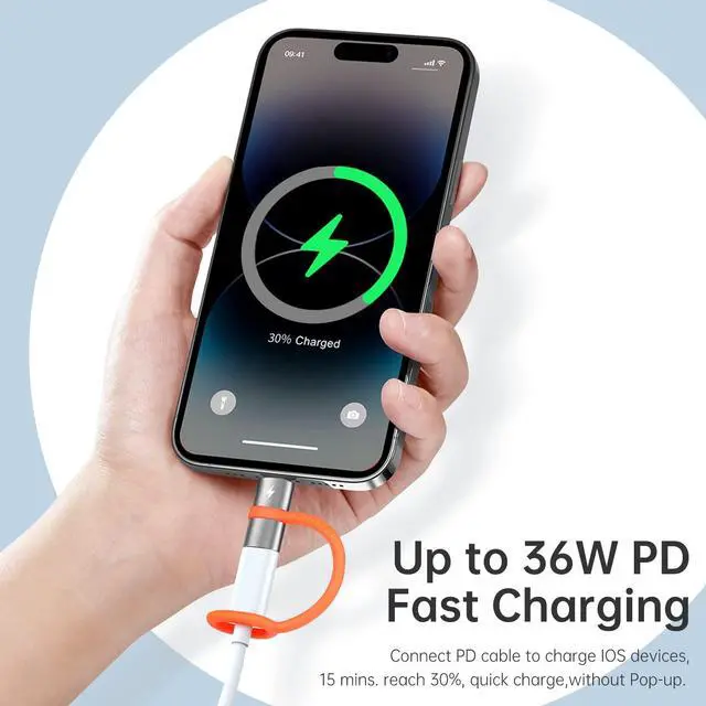 This USB C to Lightning connector can charge your iOS device up to 30% in 15 mins with the PD cable for iPhone 14/13/12/11/XS/XR/SE/AirPods.