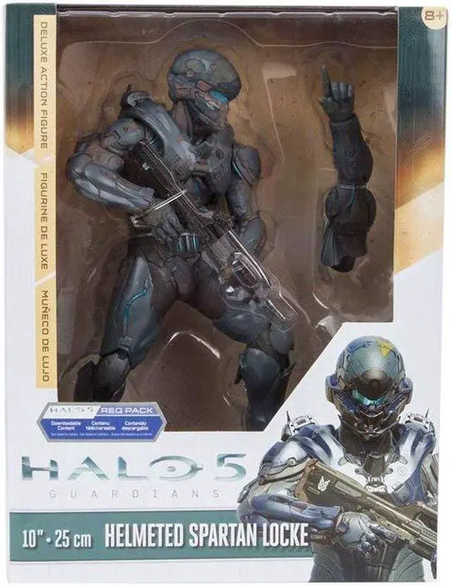Halo 5 Guardians Deluxe Spartan Locke Figure: This deluxe figure of Spartan Locke stands at 10 inches high and has a metallic sheen. He comes with two arms for two iconic poses. Perfect for any collector and Halo fan. Spartan Locke from Halo 5Rendered in incredible detailComes with an alternate arm for posing