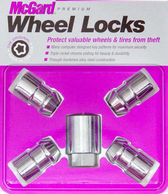 The McGard wheel locks sets include four wheel premium locks and one unique key. Five lock sets are also available. Installation is quick and easy with simple hand tools.