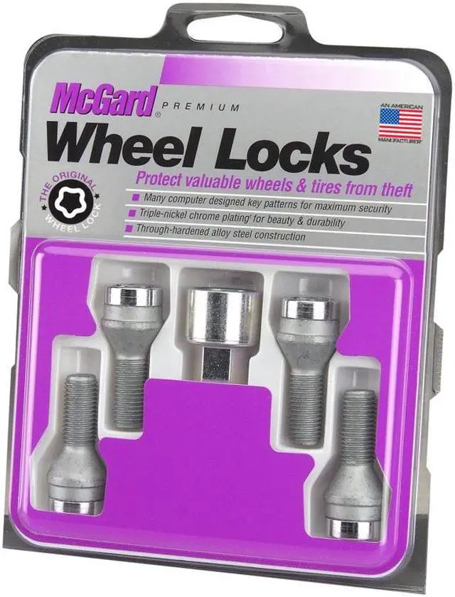 The McGard wheel locks sets include four wheel premium locks and one unique key. Five lock sets are also available. Installation is quick and easy with simple hand tools.