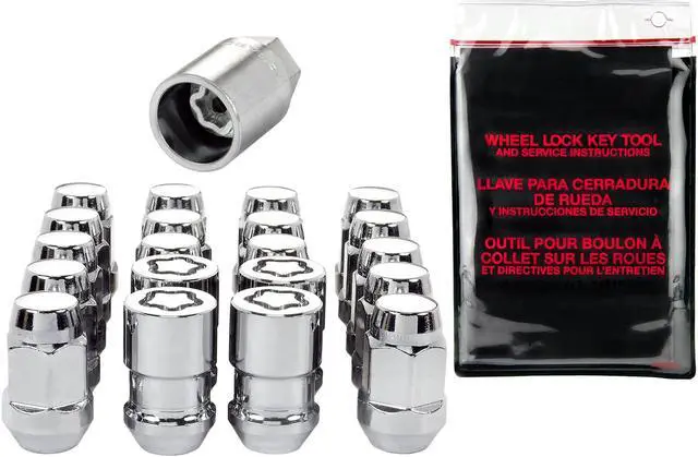 MCGARD 84537 WHL INST KIT M12X 1.5 20B5 Lug Kit; 12 Millimeter X 1.5 Thread Size; 60 Degree Conical Bulge; Acorn; Use With Steel/ Aluminum Wheels; 1.45 Inch Overall Length; 3/4 Inch Wrench Size; With 16 Chrome Lug Nuts/ 4 Chrome Wheel Locks/ 1 Wheel Lock Key Tool/ Key Storage Pouch/ ID Card5 Lug Kit 12 Millimeter X 1.5 Thread Size 60 Degree Conical Bulge Acorn Use With Steel/ Aluminum Wheels 1.45 Inch Overall Length 3/4 Inch Wrench Size With 16 Chrome Lug Nuts/ 4 Chrome Wheel Locks/ 1 Wheel Lock Key Tool/ Key Storage Pouch/ ID Card