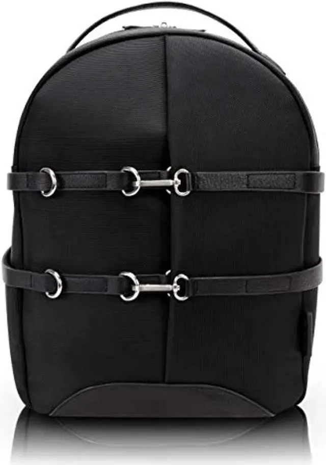 Create the success story of your life with this stylish elegant contrasting leather accents 15 Leather laptop and tablet backpack. Decorative dual front buckles and top handle bring out the forward-thinking and focused personality in you. Store your drinks, beverages, and snacks in the collapsible easy access mesh side pocket. Organize your papers and files inside our fully lined interior with Leather trim and silver hardware kept safe with a dual lockable zipper. 15 padded built in laptop sleeve and padded tablet pocket stores and keeps your important devices safe. Keep your business accessories Easily accessible with an interior organizer. Rear exterior Features ultra-padded Air mesh with air flow system (AFS) and padded backpack straps or attach it to your luggage with the piggyback strap.