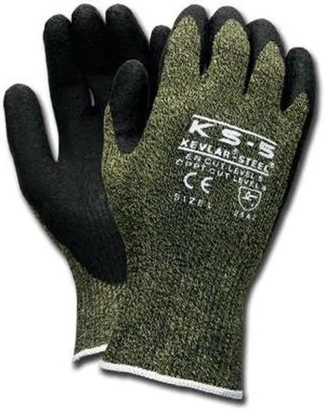 Memphis Large KS-5 13 Gauge Cut Resistant Black Latex Dipped Palm And Finger Coated Work Gloves With Green Kevlar Stainless Steel And Nylon Liner