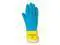 Seamless rubber gloves are made with blue neoprene over yellow latex. Ideal for the aircraft assembly, automotive, battery manufacturing and printing industry. Design features flock lining, an embossed grip on palm and fingers, a straight cuff, and 28 mil thickness.