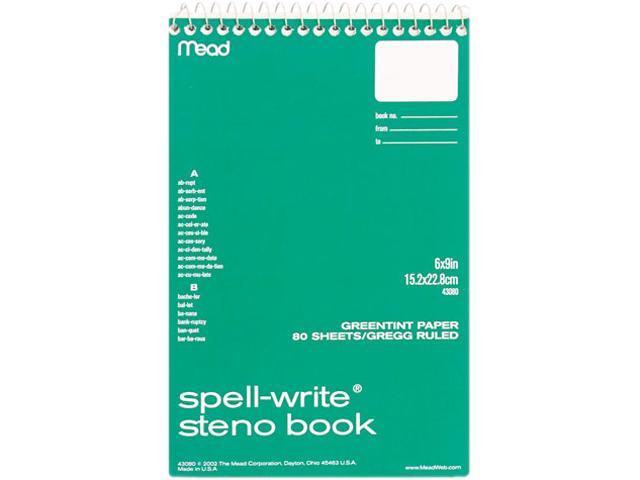 Mead 43080 Spell-Write Steno Book, Gregg Rule, 6 x 9, Green, 80 Sheets/Pad