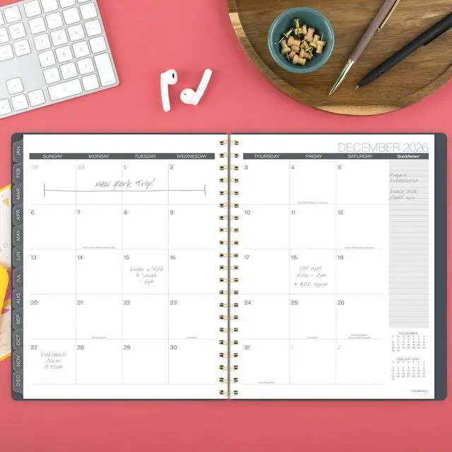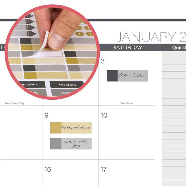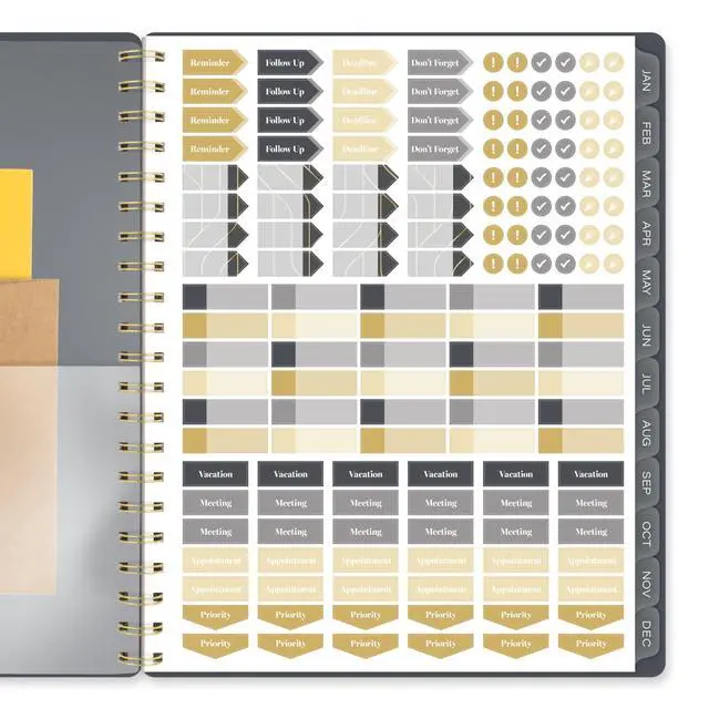 • Separate Sections: 2 Future Planning Pages; 3-Year Reference Calendar; 5 Notetaking Pages; Holiday List, Sticker Sheet