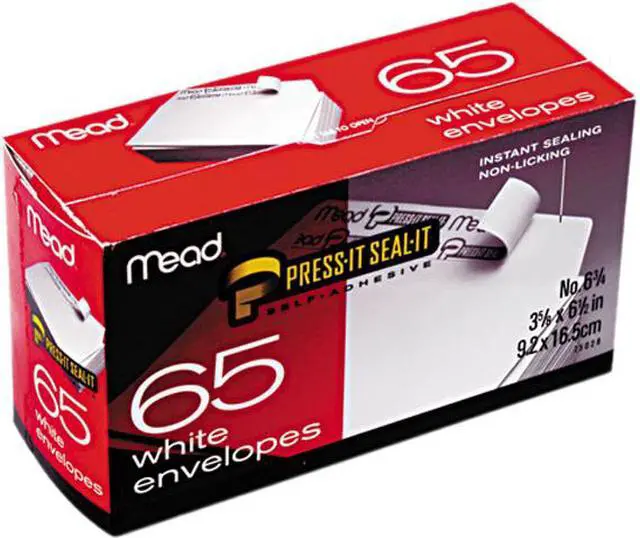 Mead 75028 Press-it Seal-it Business Envelope, 3 5/8 × 6 1/2, 20 lb, White, 65/Box