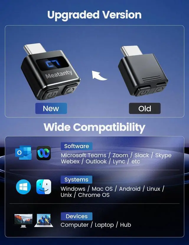 Meatanty Metal USB-C Tiny Mouse Jiggler, Type-C Mouse Mover Undetectable, Automatic Shaker with Separate Mode and ON/Off Buttons, Mouse Moving Device LED Screen, Wiggler Giggler Keep Computer/PC/Laptop Awake