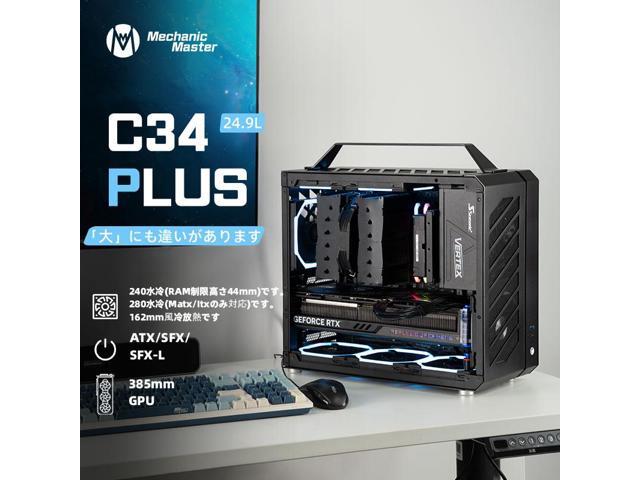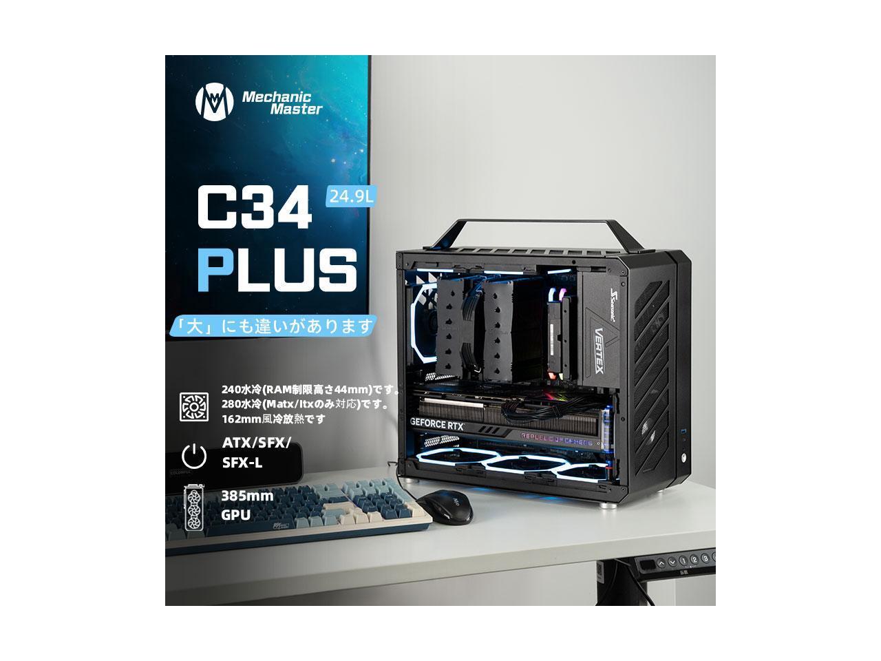 Mechanic Master C34Plus Portable Desktop ATX Case with Aluminum Handle - 5-Slot Mode Switchable, MATX Motherboard Support, 240mm AIO Compatibility (RAM Height 44mm), Fits Extra-Long GPUs