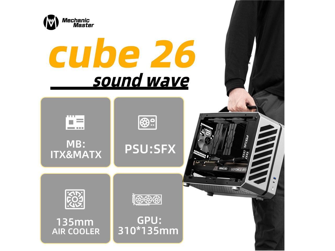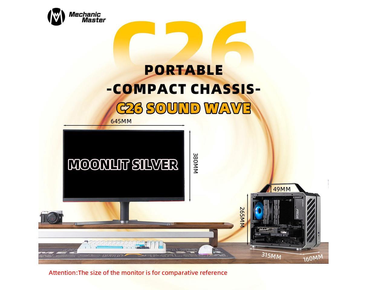 Mechanic Master C26 Desktop Portable Mini MATX Case with Handle | 13.2L | SFX PSU Compatible | MATX Motherboard | 310mm GPU | 135mm Air Cooling (Moonlight Silver)