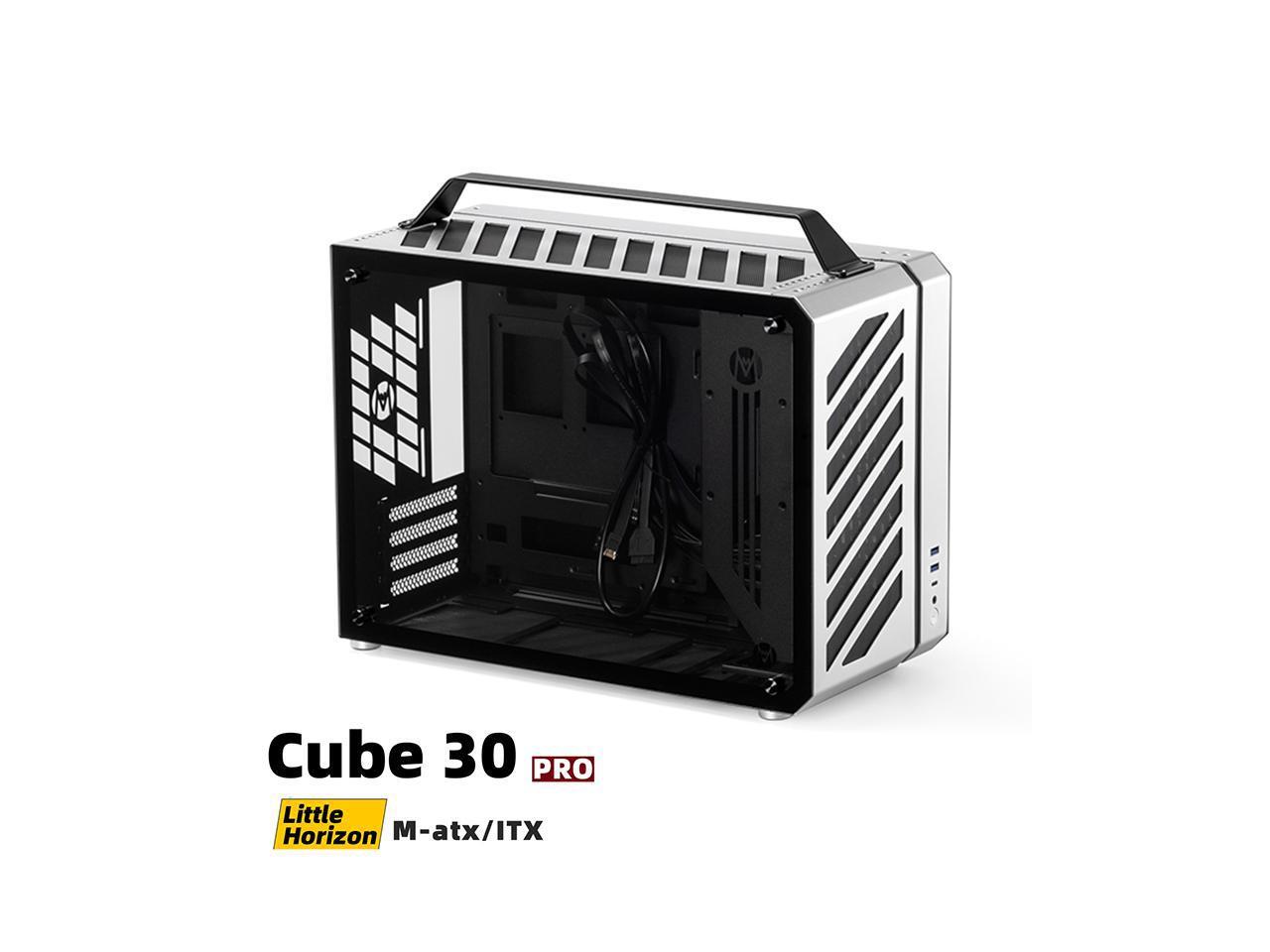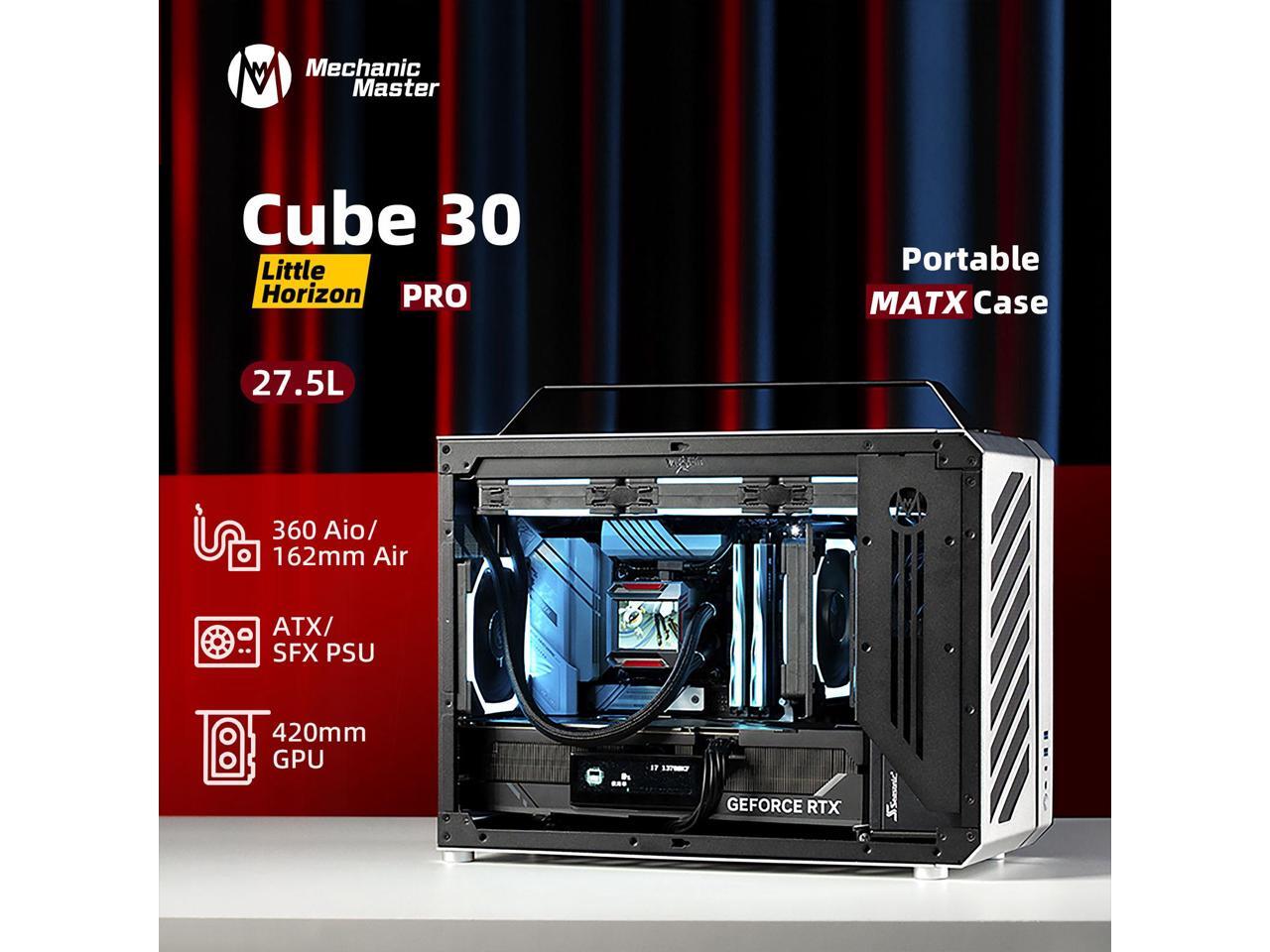 Mechanic Master C30Pro Compact MATX Case - Reverse Connector Motherboard Support, 360mm AIO Compatibility, RAM Cooling Fan Bracket, Portable Handle,4-Slot Design (Moonlight Silver)