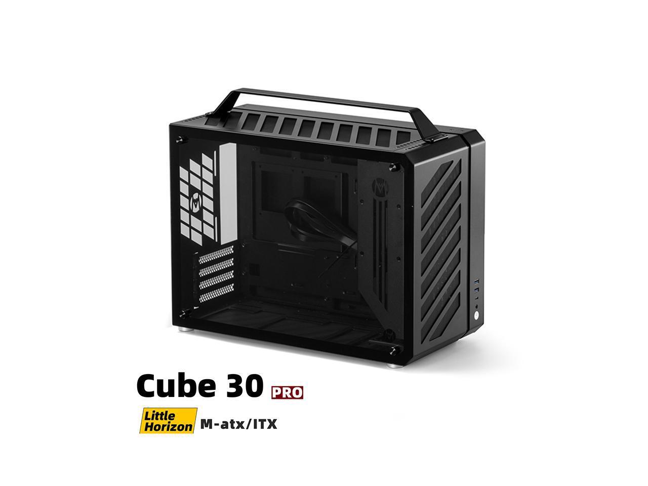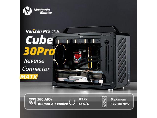 Mechanic Master C30Pro Compact MATX Case - Reverse Connector Motherboard Support, 360mm AIO Compatibility, RAM Cooling Fan Bracket, Portable Handle,4-Slot Design (Elegant black)