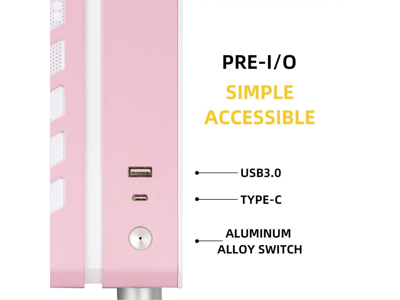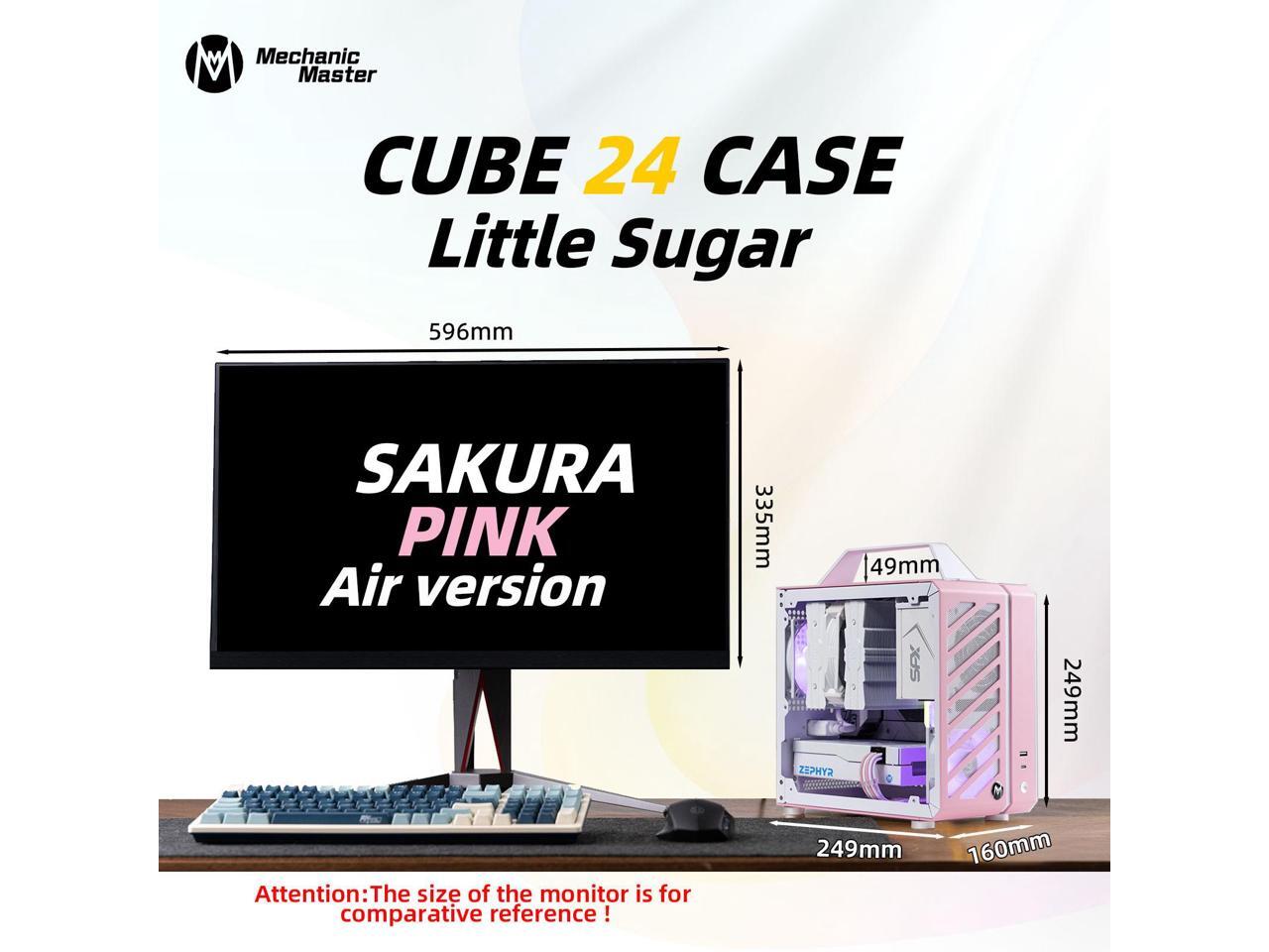 Mechanic Master C24 Small Cube Sugar Mini-ITX Chassis / Alumium / Steel / Temered Glass ITX Small Form Factor Computer Case Pink