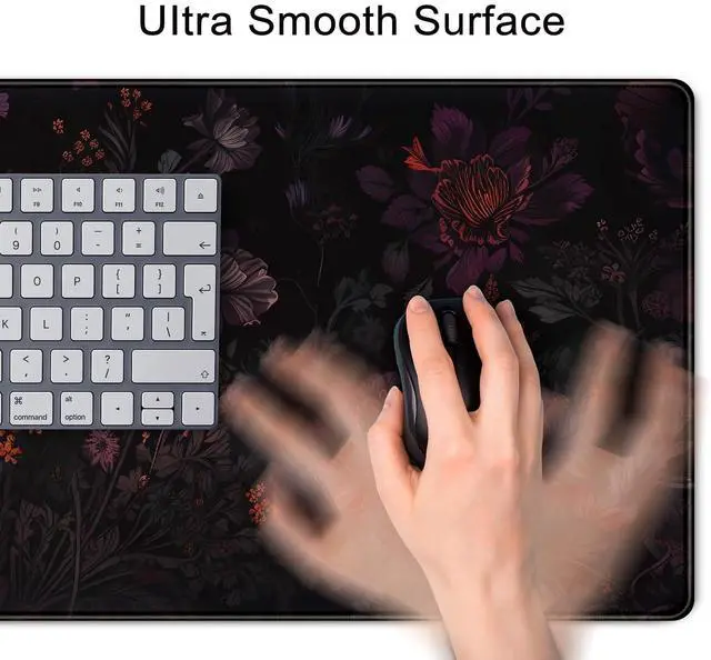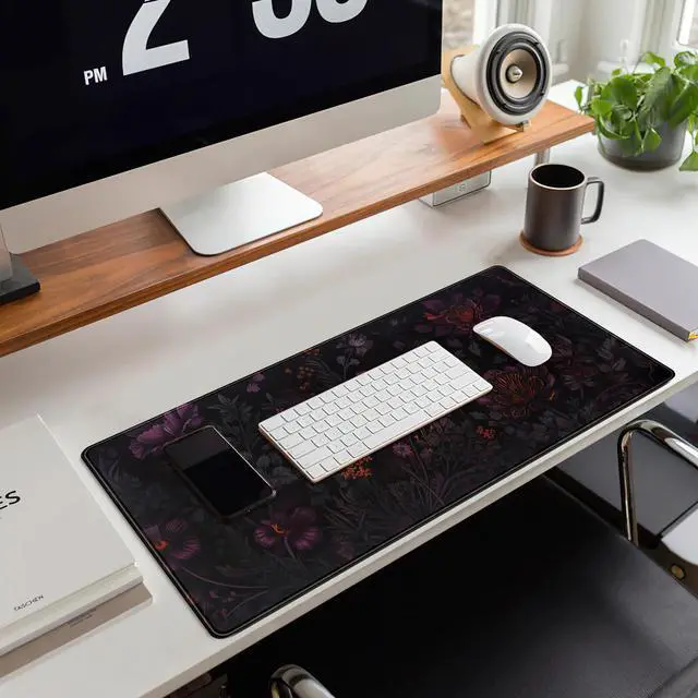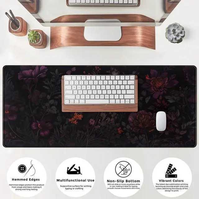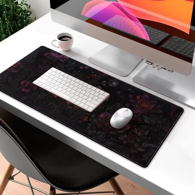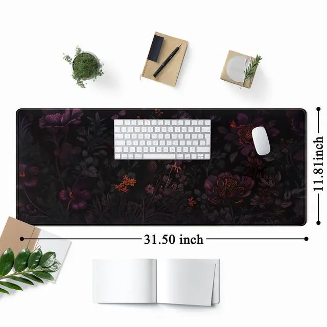Dark Cottagecore Desk Mat Black Purple Flower XL Mouse Pad Large Gaming Mousepad Extended Vintage Aesthetic Desk Pad Keyboard Mouse Mat 31.5 x 11.8 in for Work Game Office Decor