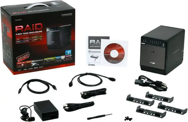 • neweggFour-Bay Hardware RAIDThe Mediasonic HFR2-S3B supports four 3.5" SATA I/II hard drives for superior expandability. Built-in hardware RAID controller eliminates OS compatibility issues and reduces the load of the server.