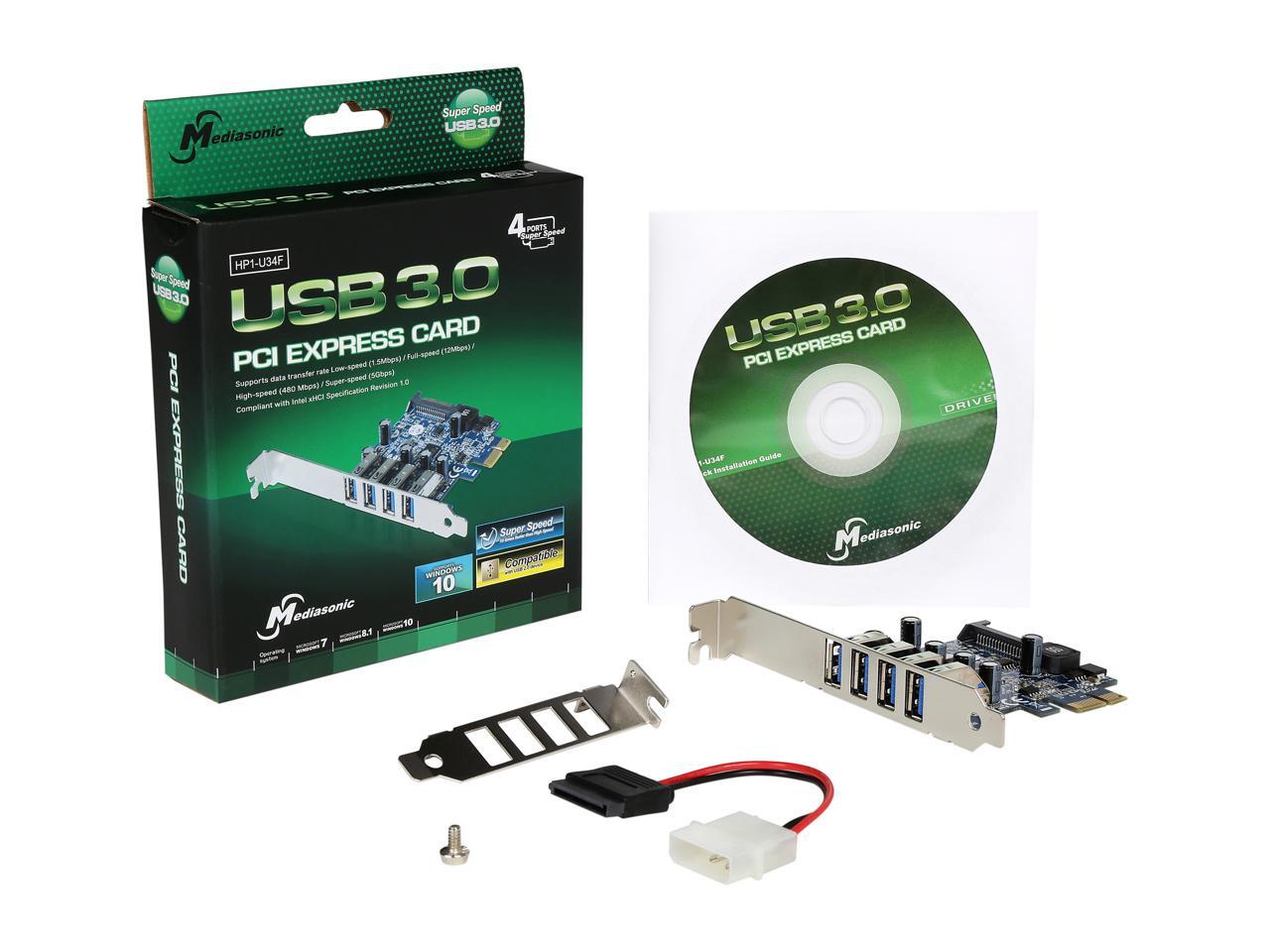 Mediasonic HP1-U34F PCI Express 4 Ports External USB 3.0 PCI Express Card
